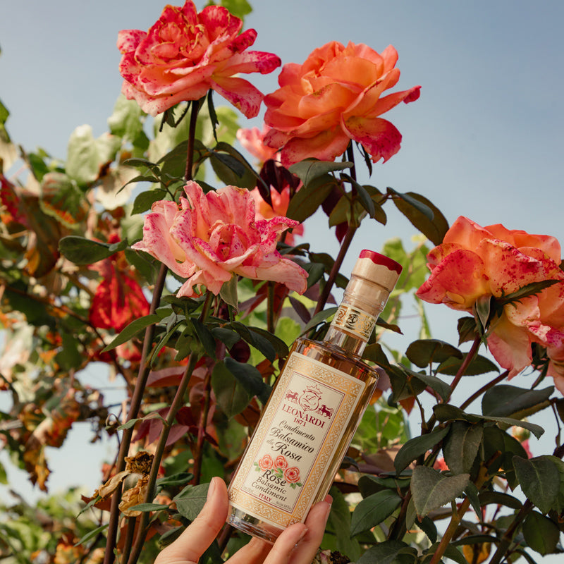 Leonardin Rose Balsamico-kastike tuo myös ripauksen eleganssia ja hienostuneisuutta jälkiruokiin. Ruusuilla maustettu vaalea balsamico tekee yksinkertaisistakin herkuista unohtumattomia. Maku on hienovaraisen makea, kukkainen ja raikkaan hapokas – täydellinen tasapaino eleganssia ja vivahteikkuutta.