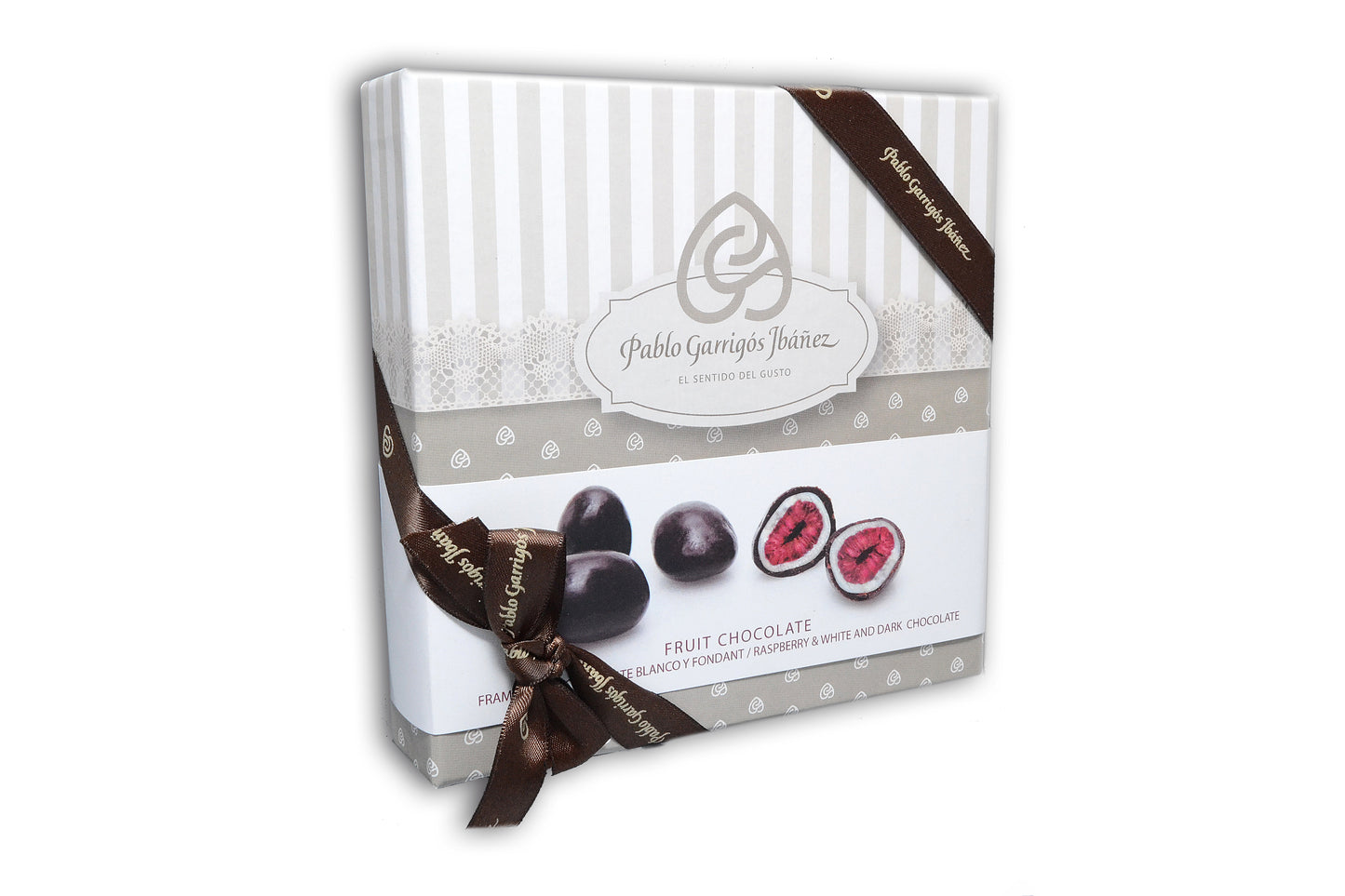 Pablo Garrigos Tummaa ja valkoista suklaata ja Vadelmaa 100g